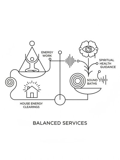 Intuitive energy healing sessions using Shamanic Energy Healing and Reiki. Offerings include 1:1 private sessions, shared sessions for couples or loved ones, and energy clearings for homes and businesses to restore balance and harmony.
